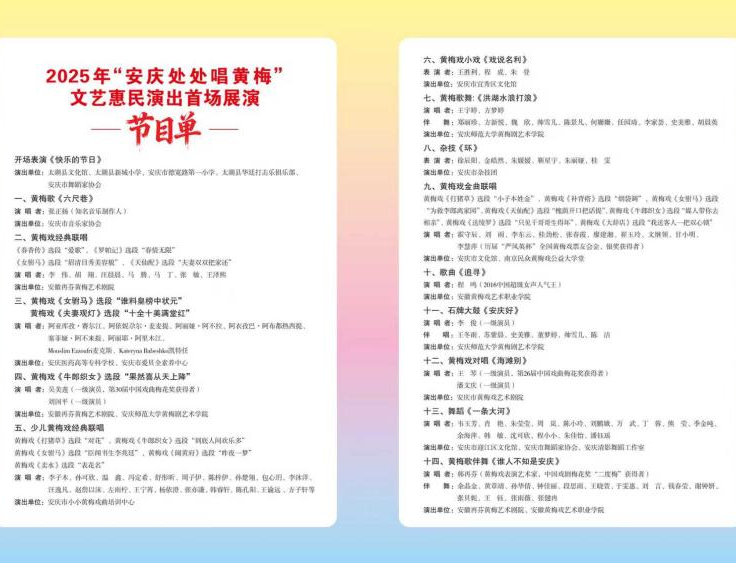国庆假期期间,学院也扛起“文艺惠民”大旗。学院师生参与2025年“安庆处处唱黄梅”文艺惠民演出活动,为市民送上节日的温馨,用精湛表演让市民在家门口就能欣赏到专业黄梅戏,真正实现“安庆处处有黄梅,黄梅声声润民心”。10月1日晚在首场展演中,刘国平副院长献唱《牛郎织女》选段“果然喜从天上降”,当天吸引约7000名现场观众,线上人次约25万人。