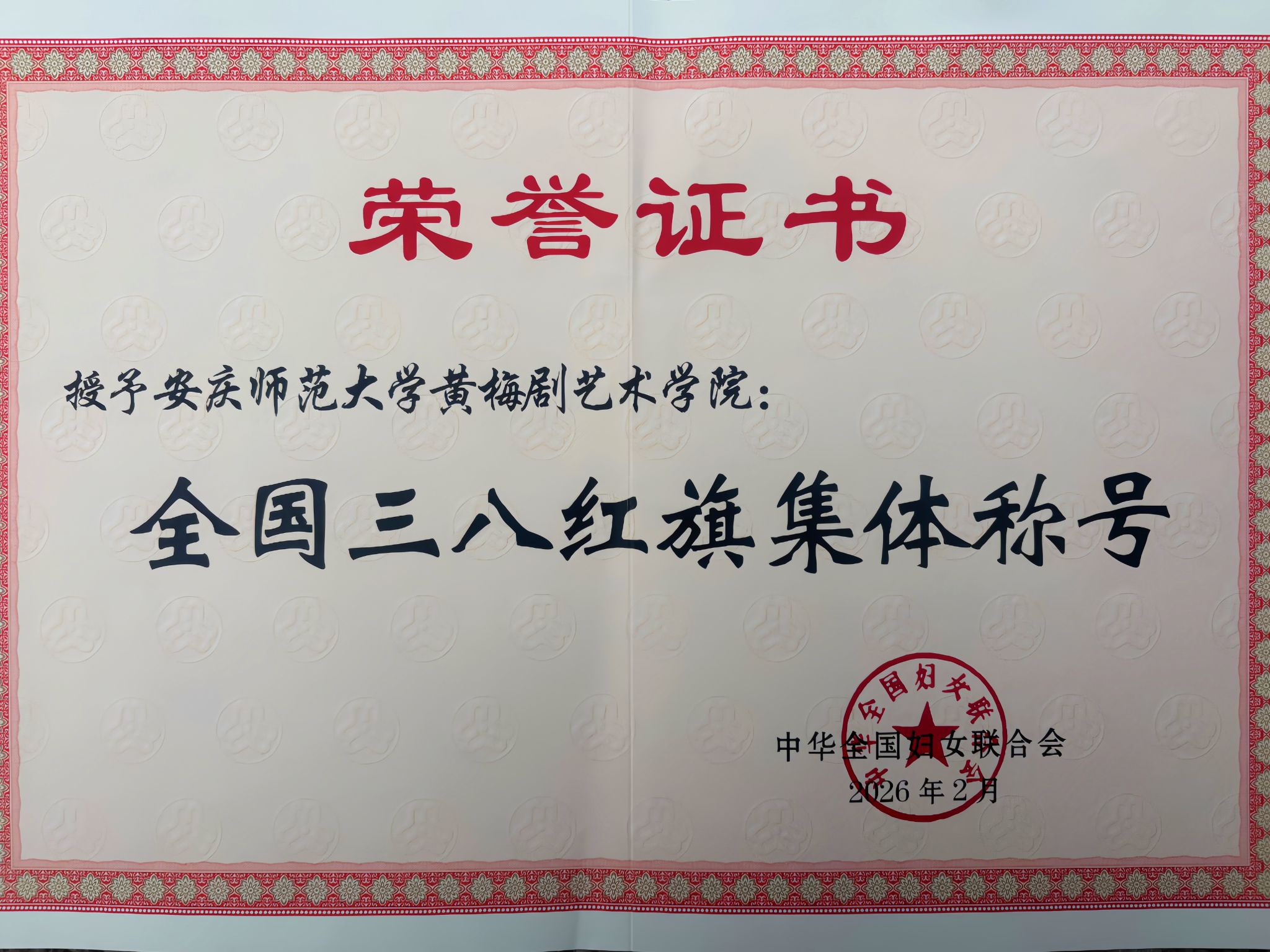 3月2日,全国妇联正式公布2025年度全国三八红旗集体表彰名单。我院成功入选,这是学院首次荣获此项国家级荣誉,实现了学院在该项荣誉上的历史性突破,充分彰显了女性教职工在黄梅戏文化传承与人才培养、教育教学改革与文化创新发展中的巾帼担当与磅礴力量。