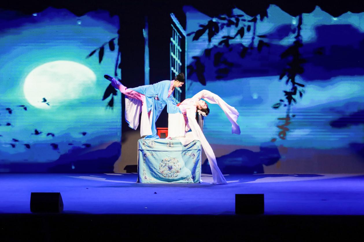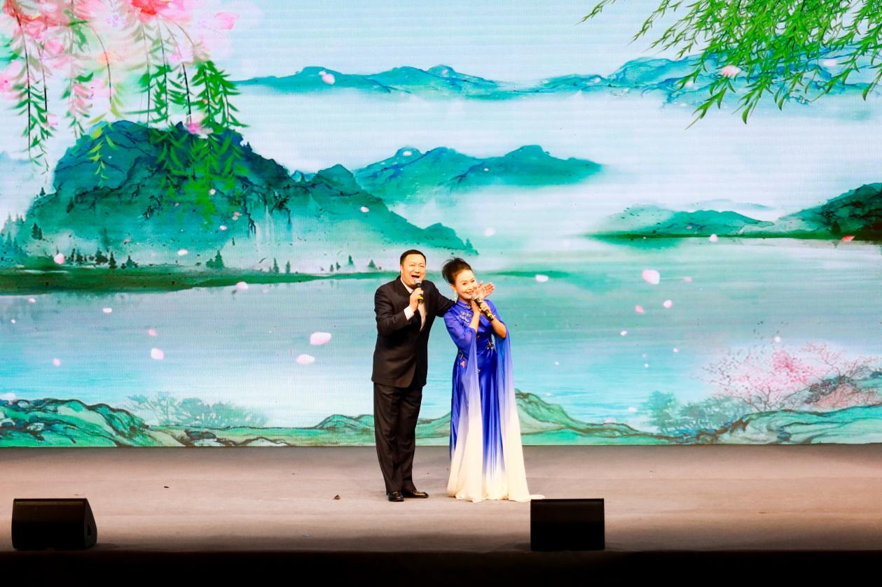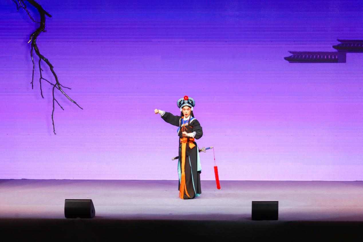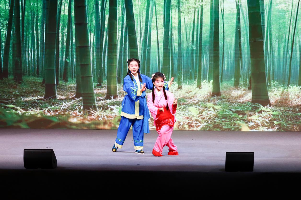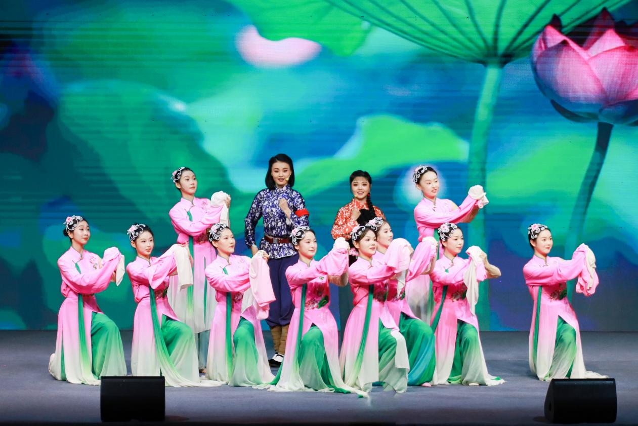 演出启幕前,体育馆座无虚席。伴随着激昂的乐声,开场舞《祖国我依恋你》以灵动的舞姿点燃现场;《打猪草・对花》巧用俏皮唱腔,将乡村少年的童真展现得淋漓尽致;《邓稼先》以深情的唱腔生动诠释邓稼先的家国担当;《夜奔》通过扎实的身段将林冲的愤懑与决绝刻画得入木三分;黄梅戏经典对唱《海滩别》《夫妻双双把家还》以婉转唱腔令观众沉醉于古典爱情的温婉与浪漫;《活捉》融合戏曲程式与剧情张力,让观众身临其境;《洪湖水浪打浪》则凭悠扬婉转的曲调,把洪湖的秀丽风光与军民情怀展现得淋漓尽致;《状元府》(《女驸马》选段)情节紧凑,表演精湛,令人惊叹;京剧《沙家浜》一人三声,将角色展现得鲜活生动。