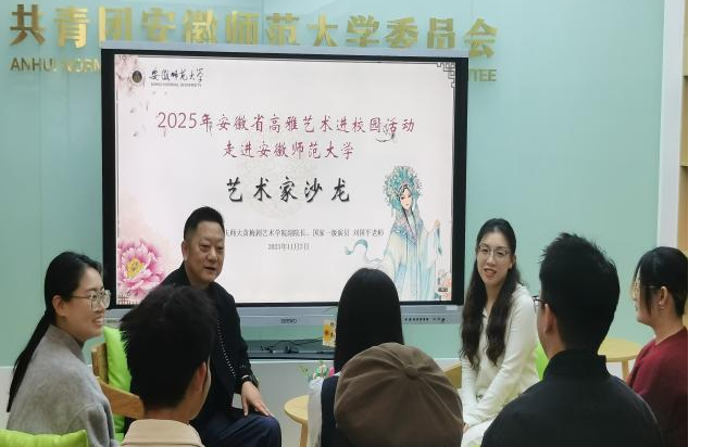 为搭建校际文化艺术交流桥梁,保持传统戏曲与青年学子的沟通,11月8日下午,我院副院长、一级演员刘国平及青年教师刘丽赴安徽师范大学,成功举办了一场主题鲜明、内容丰富的艺术家沙龙活动。活动现场,安徽师范大学青风戏曲社成员及热爱传统戏曲文化的师生齐聚一堂,共赴一场兼具专业性与实践性的黄梅戏文化交流。