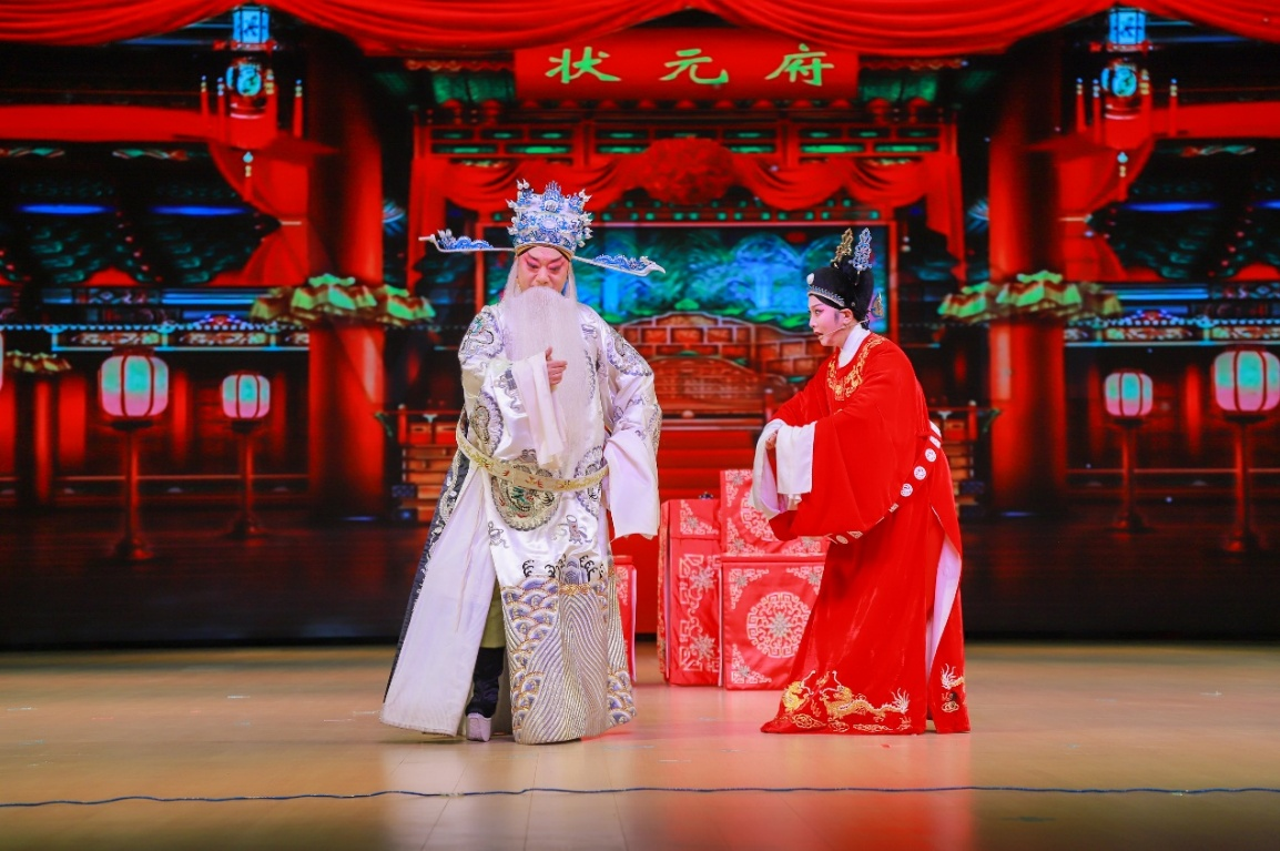 家喻户晓的《女驸马·状元府》作为压轴表演轰动全场,国家一级演员、英国正版365首页副院长刘国平与国家一级演员、英国正版365首页教师余淑华用饱满的感情、铿锵有力的唱腔,再现了冯素珍在状元府中巧妙应对刘大人的“大喜”,将冯素珍内心的忐忑与对爱情的坚守演绎得淋漓精致,不少观众沉浸其中,感受人物的喜怒哀乐。